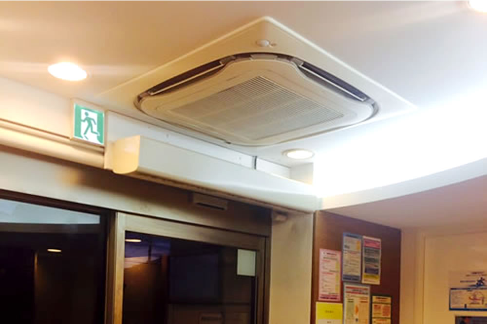 医院入り口への粉塵混入を防ぐエアカーテンを採用しています。